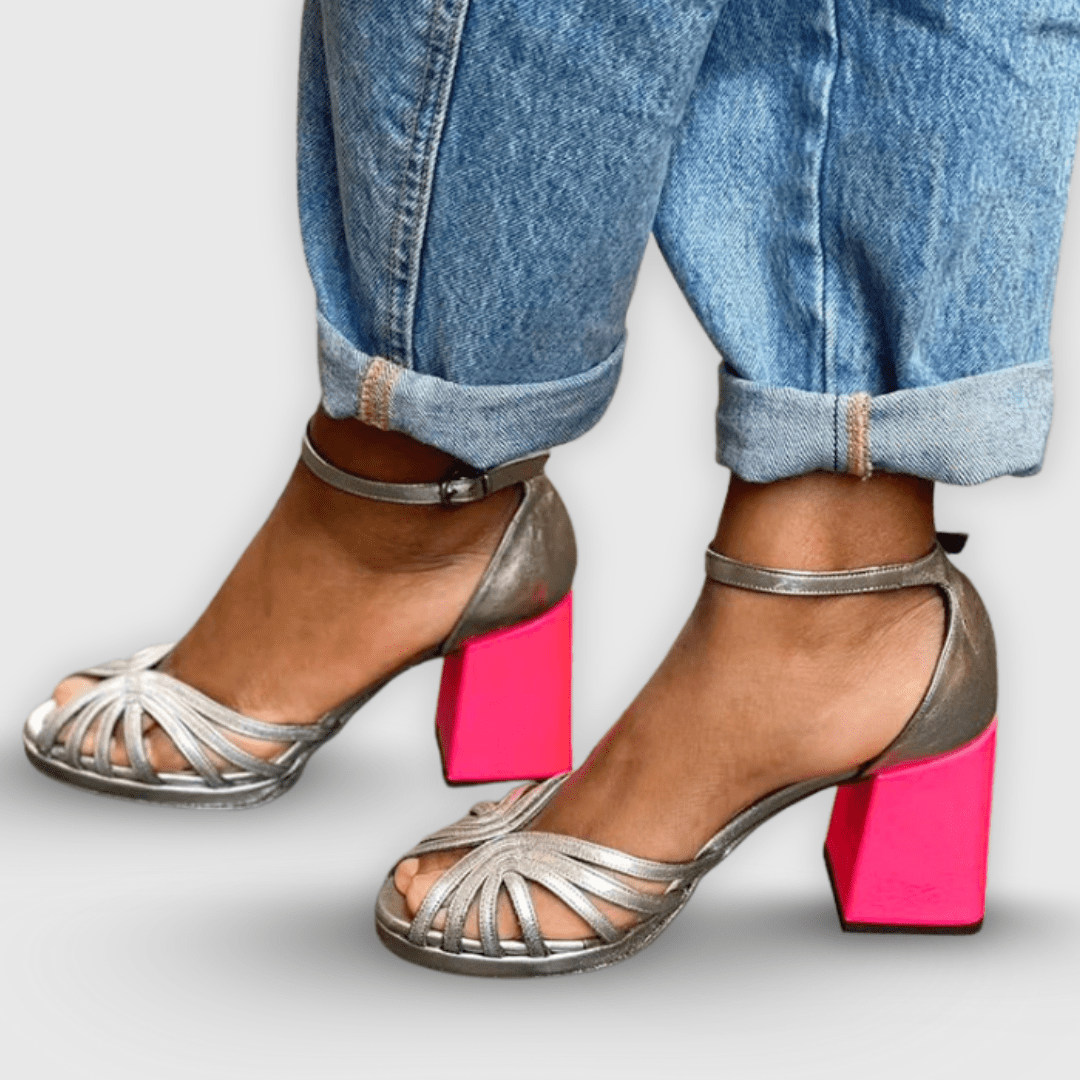 Sofia ist eine glamourös und eine unvergessliche Sandale, die kombiniert Stil Und Charakter Mit ihrem breiten Absatz und den eleganten goldenen Riemen ist diese Sandale ein echter Hingucker.