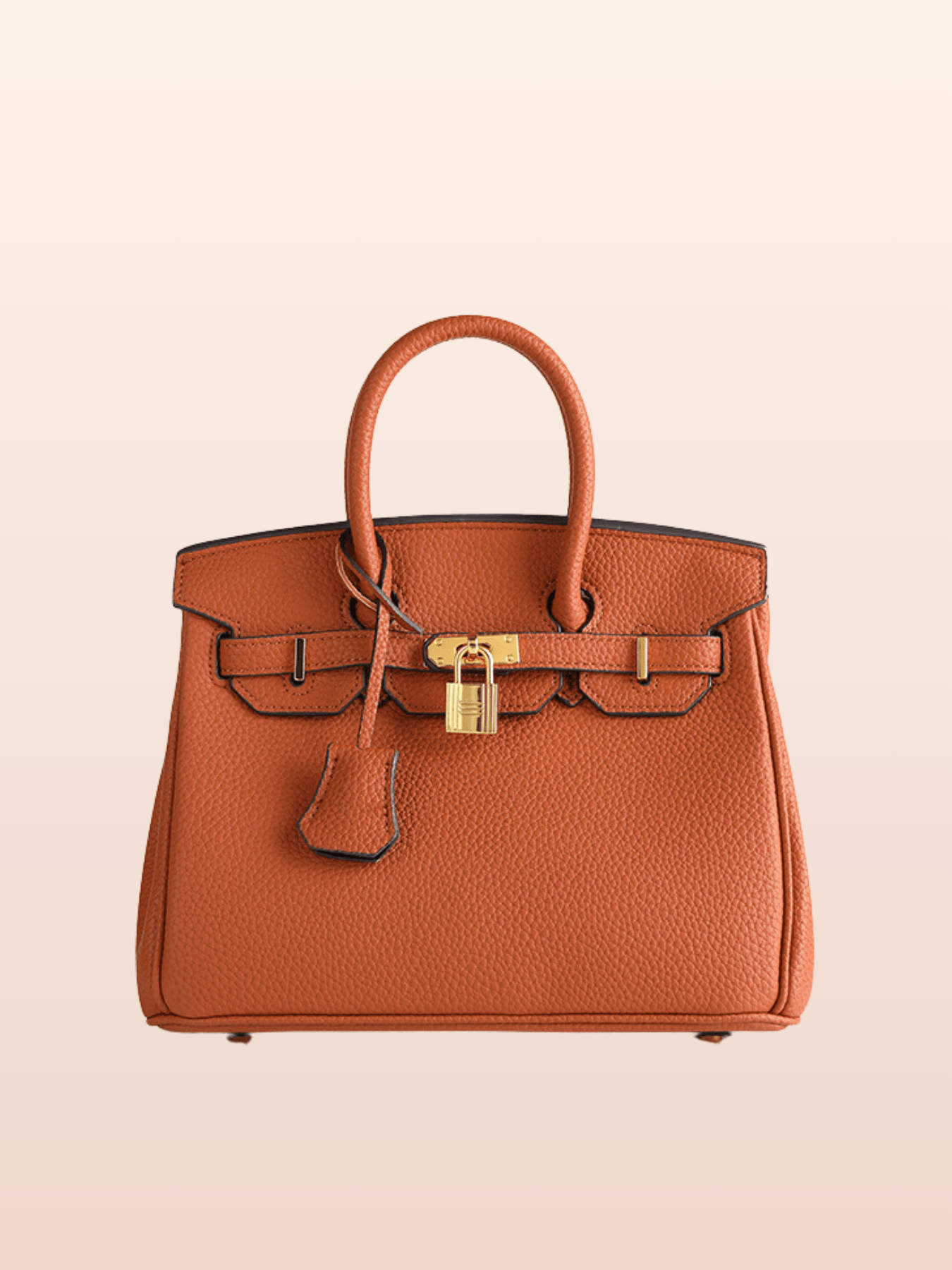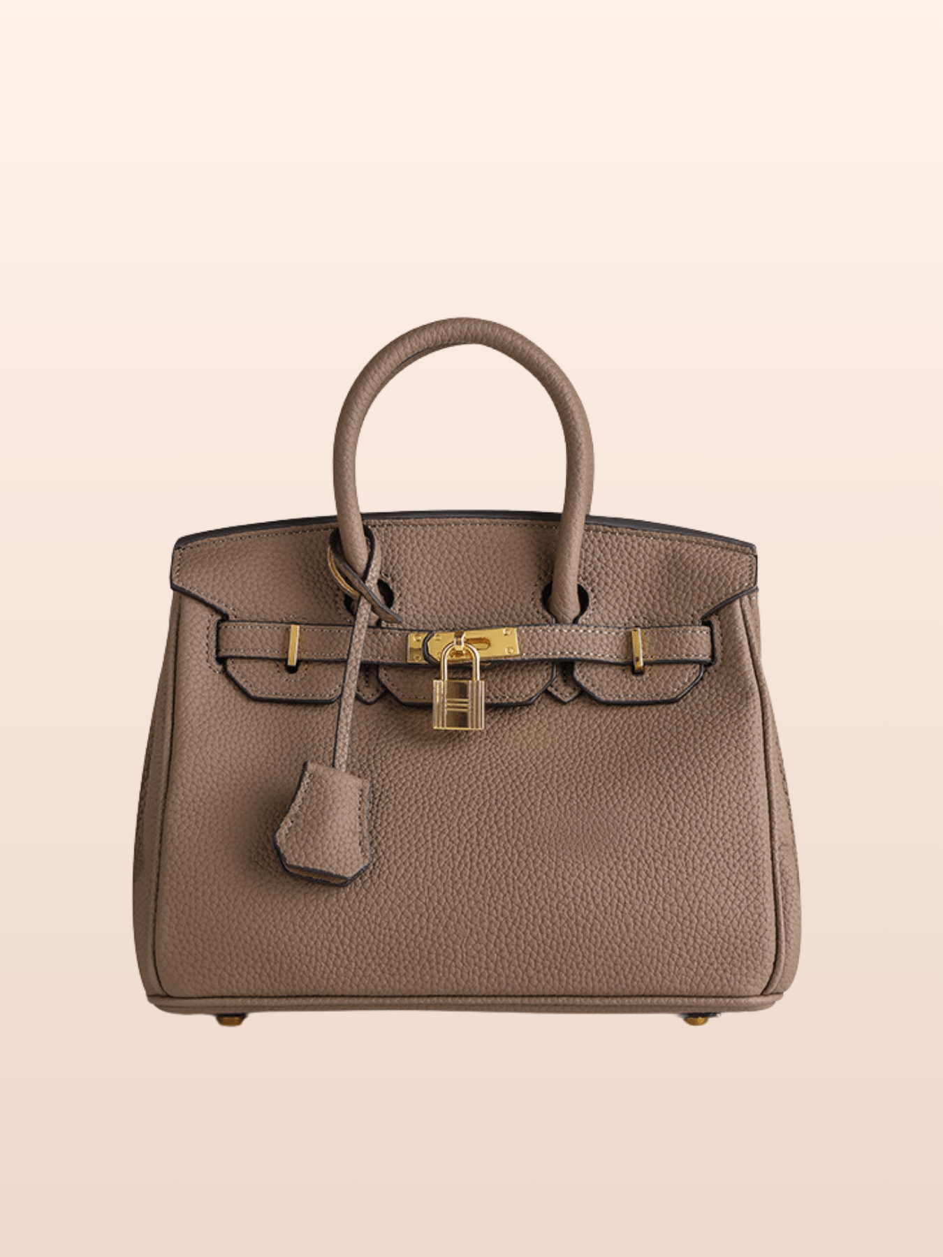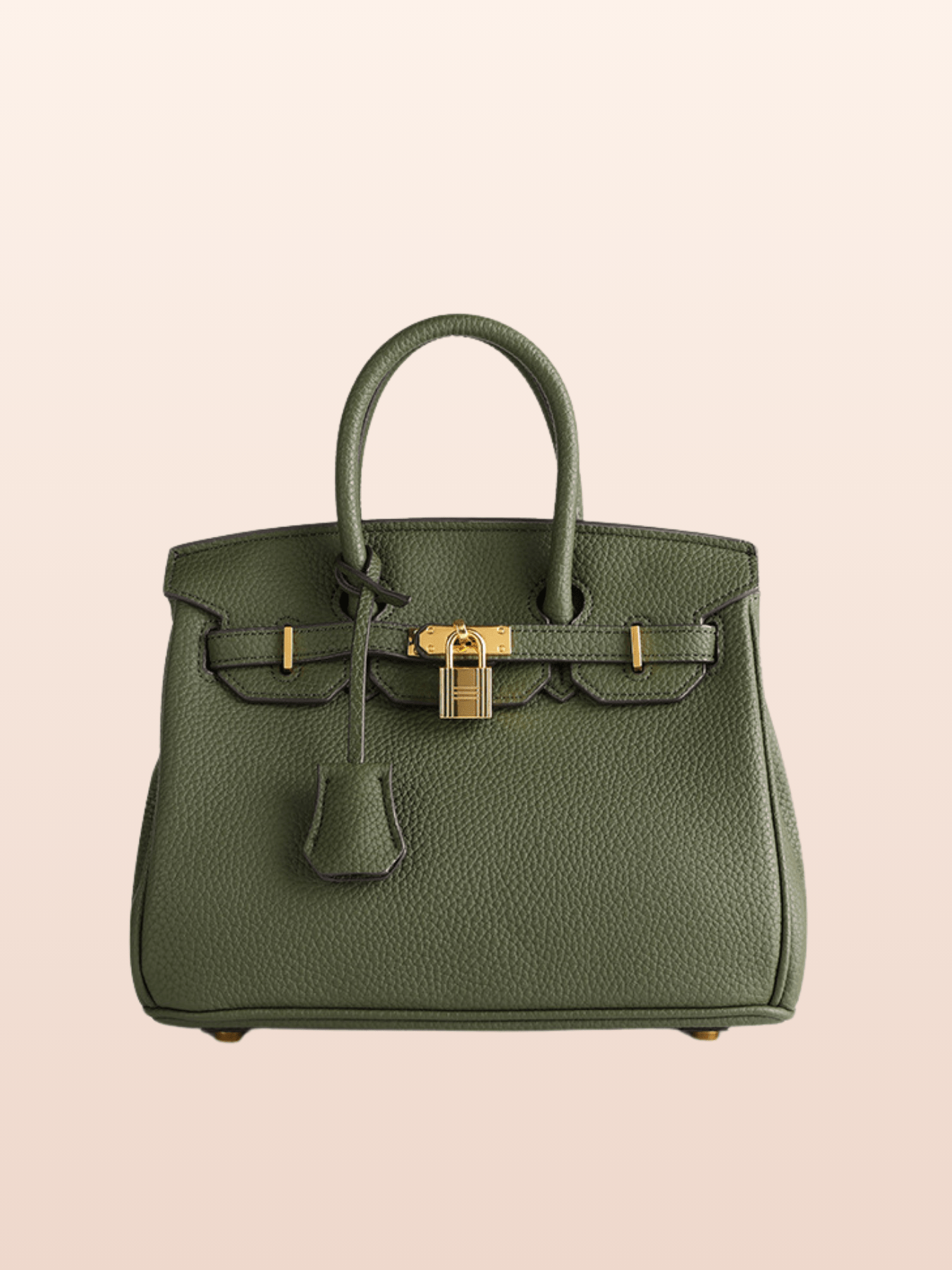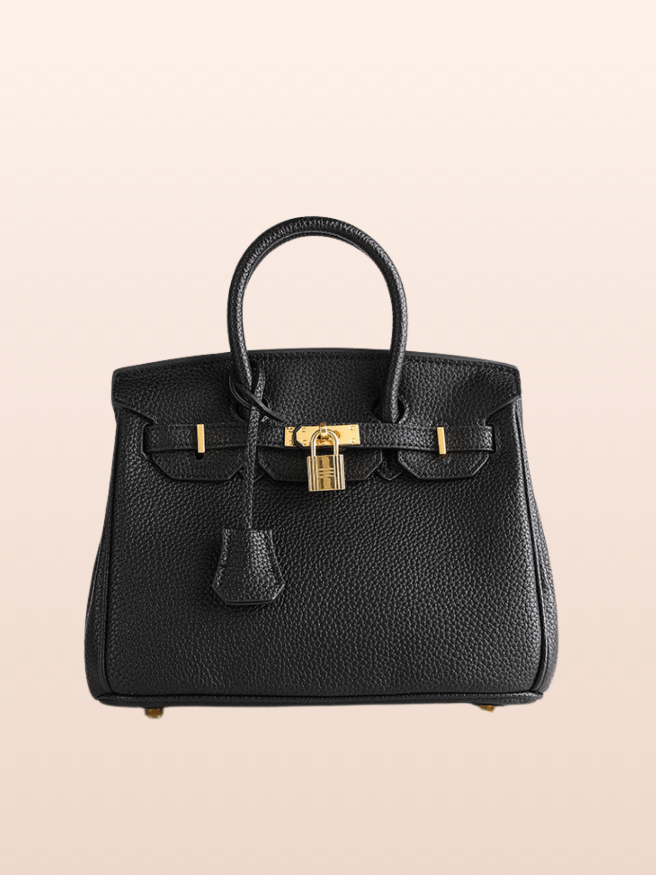 Prestigeträchtiges Design: Inspiriert von ikonischen Taschen, besticht Lia durch ihren zeitlosen Look. Der edle goldene Verschluss und das exklusive genarbte Leder verleihen ihr eine elegante Note, die nie aus der Mode kommt.