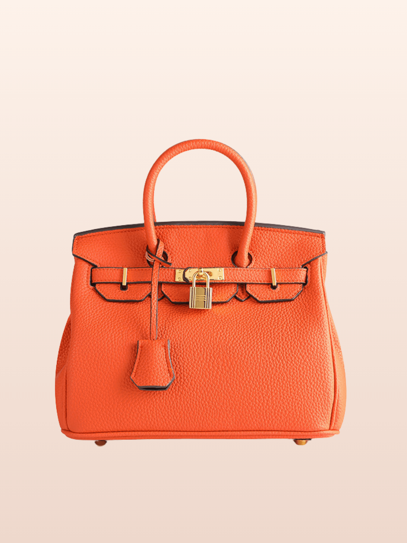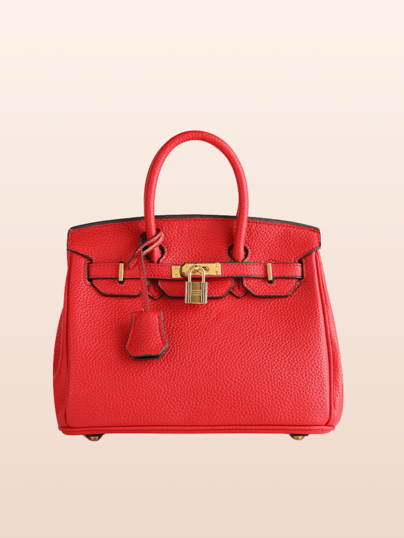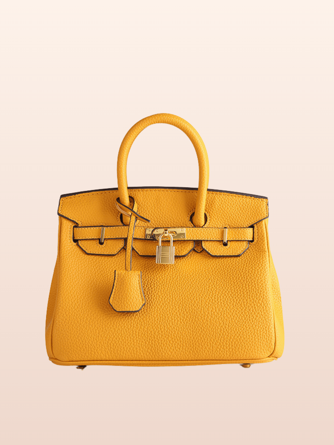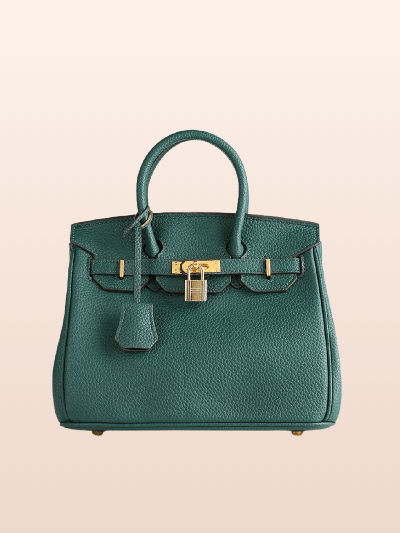 Prestigeträchtiges Design: Inspiriert von ikonischen Taschen, besticht Lia durch ihren zeitlosen Look. Der edle goldene Verschluss und das exklusive genarbte Leder verleihen ihr eine elegante Note, die nie aus der Mode kommt.