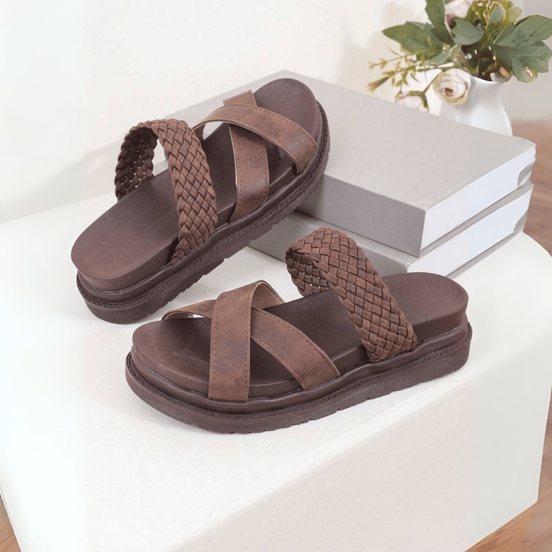 Sofia sind mehr als nur Sandalen; sie bieten sommerlichen Komfort mit einem anspruchsvoll Design. Der weiche Keilabsatz bietet Stabilität den ganzen Tag lang, während die geflochtenen Details und die gekreuzten Riemen jedem Outfit eine elegante Note verleihen.
