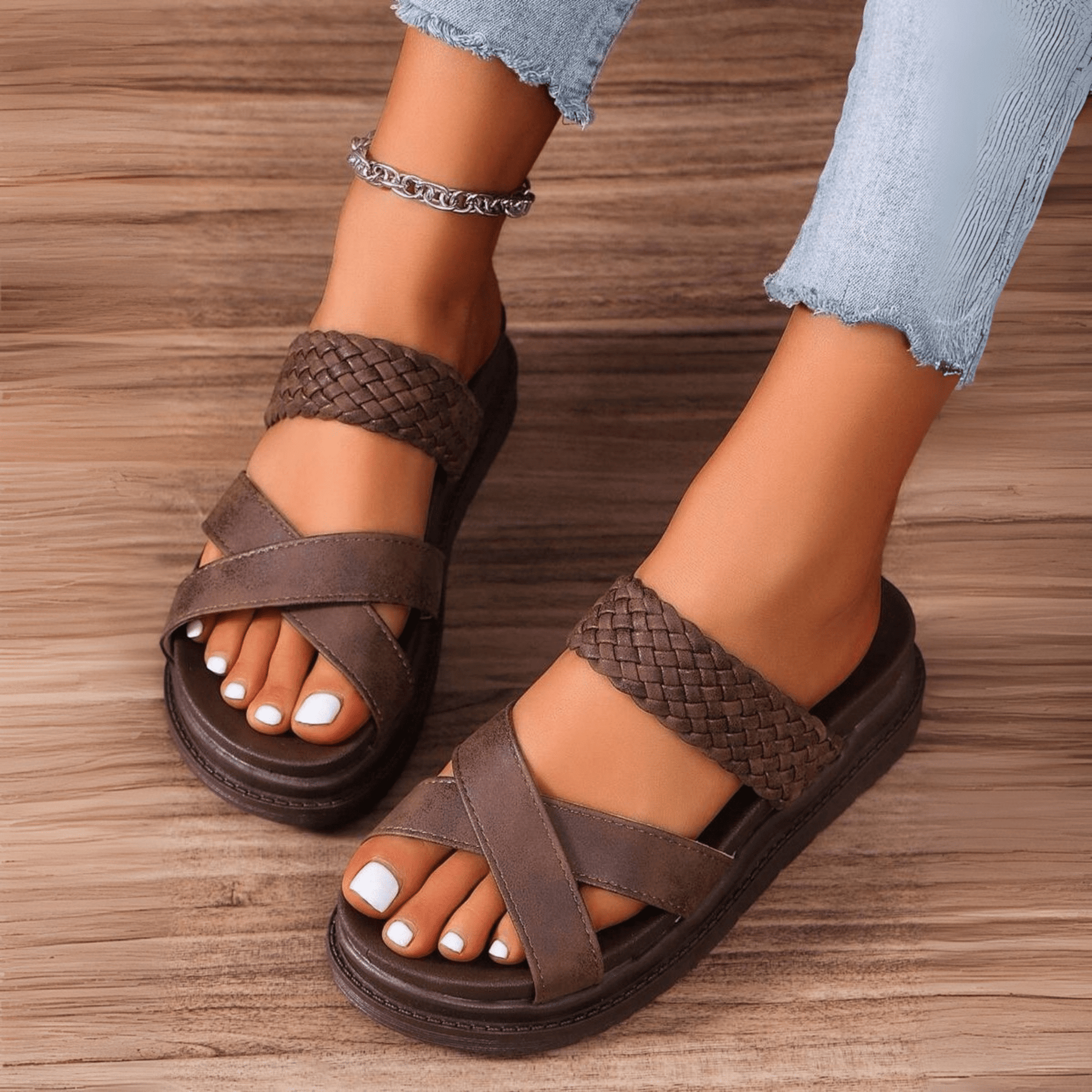 • Elegantes Design: Geflochtene Details verleihen ihnen eine exklusive Note. Diese Sandalen sind perfekt für jeden Sommerlook.