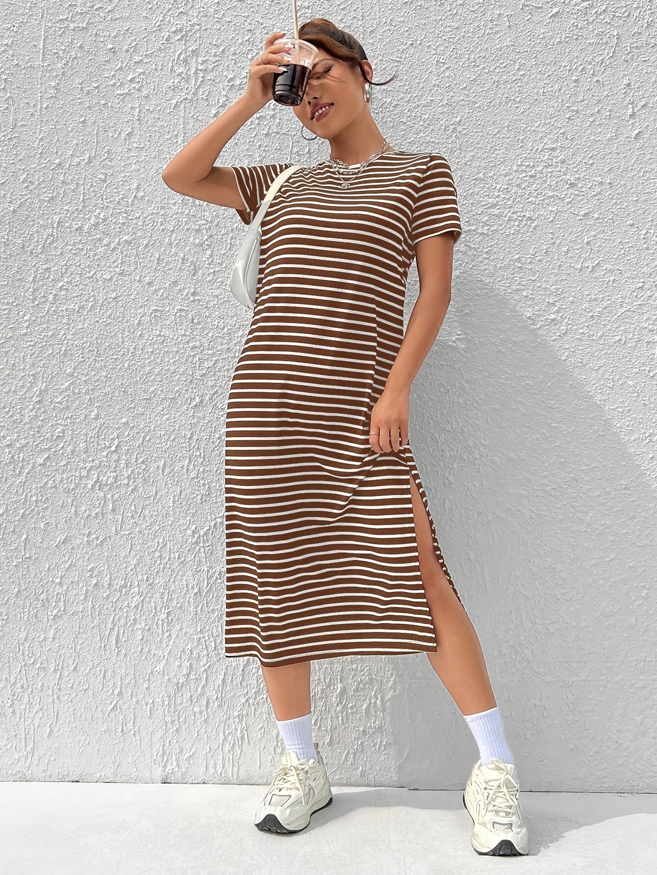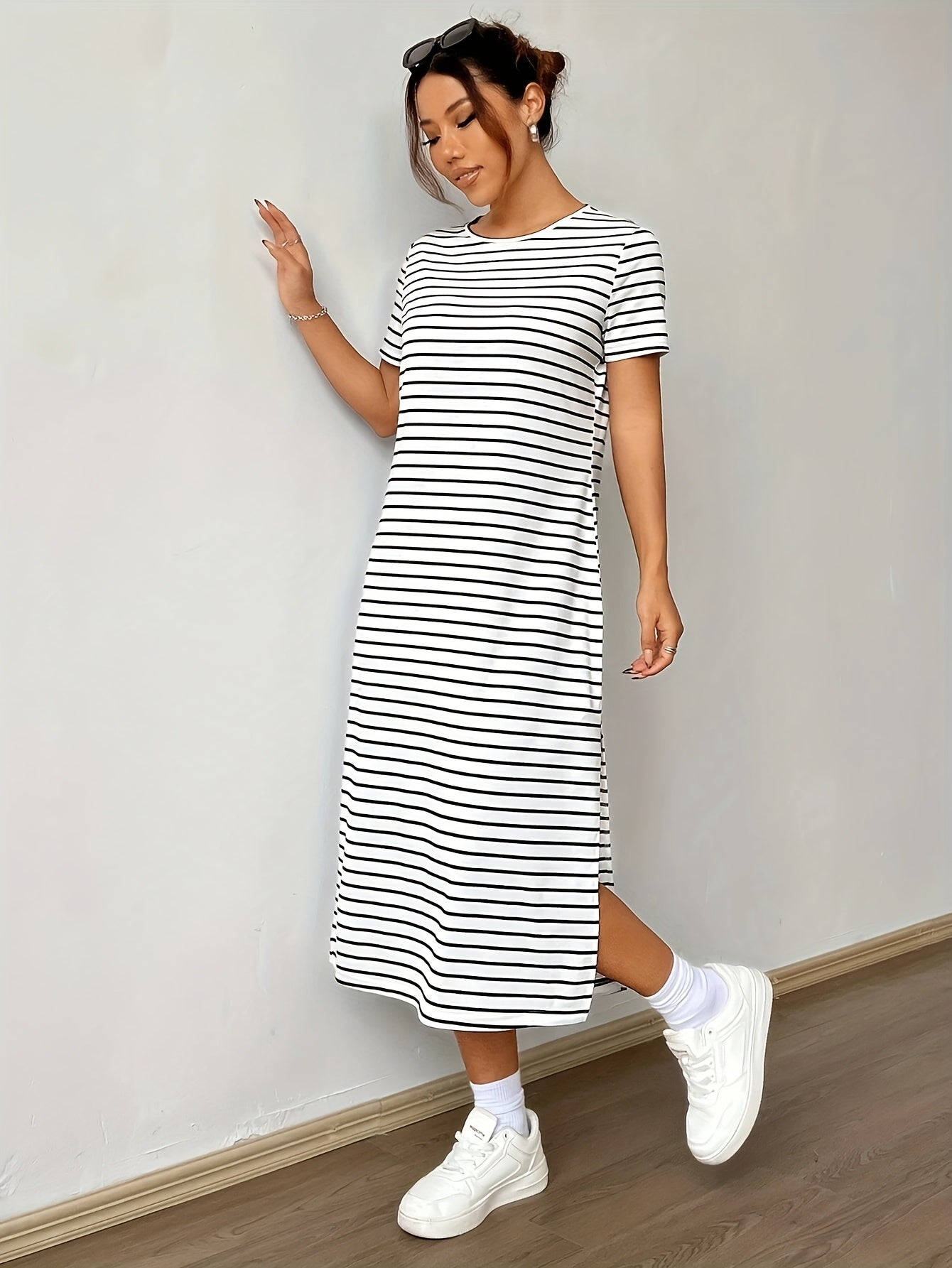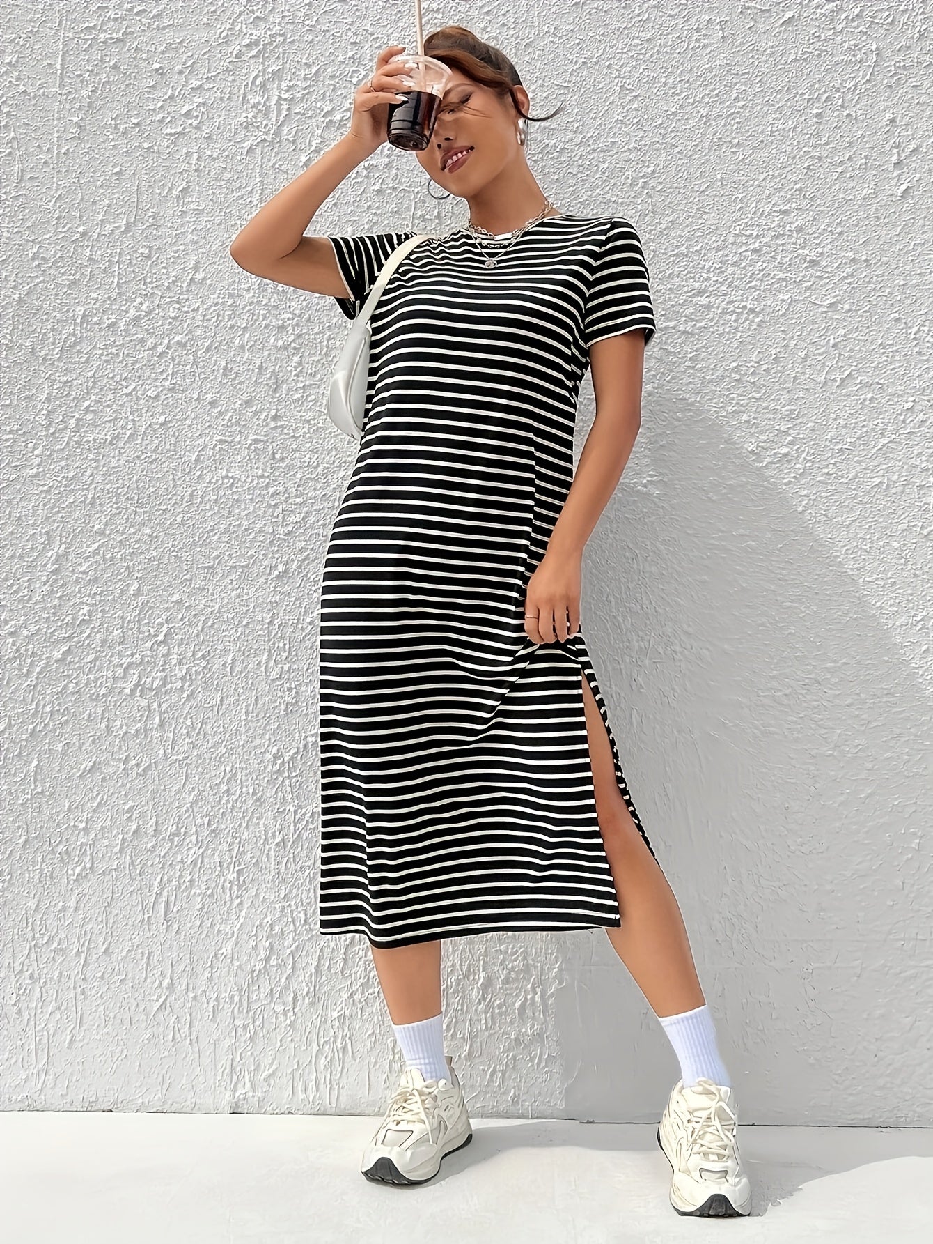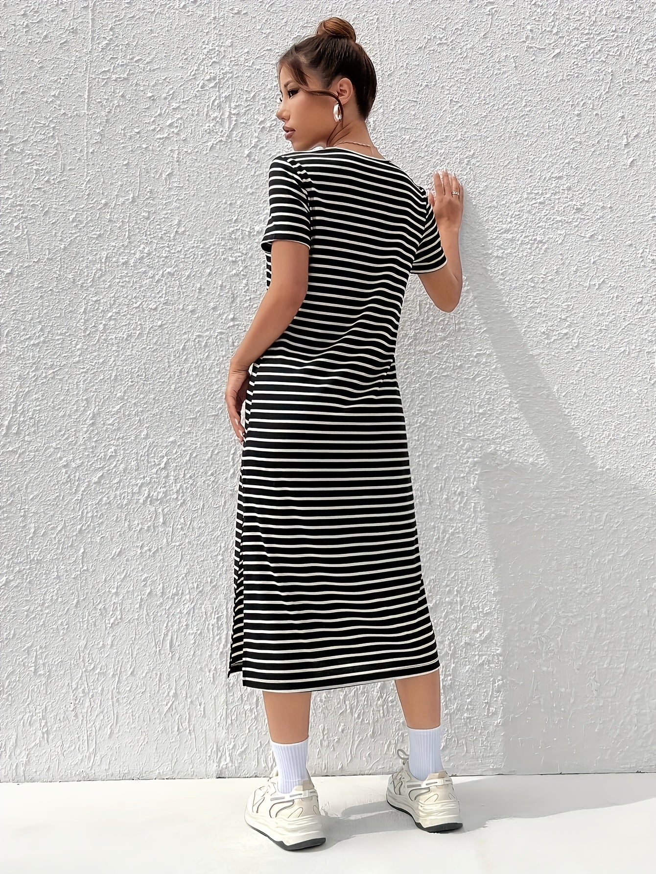 Linnea | Gestreiftes T-Shirt-Kleid mit Schlitz