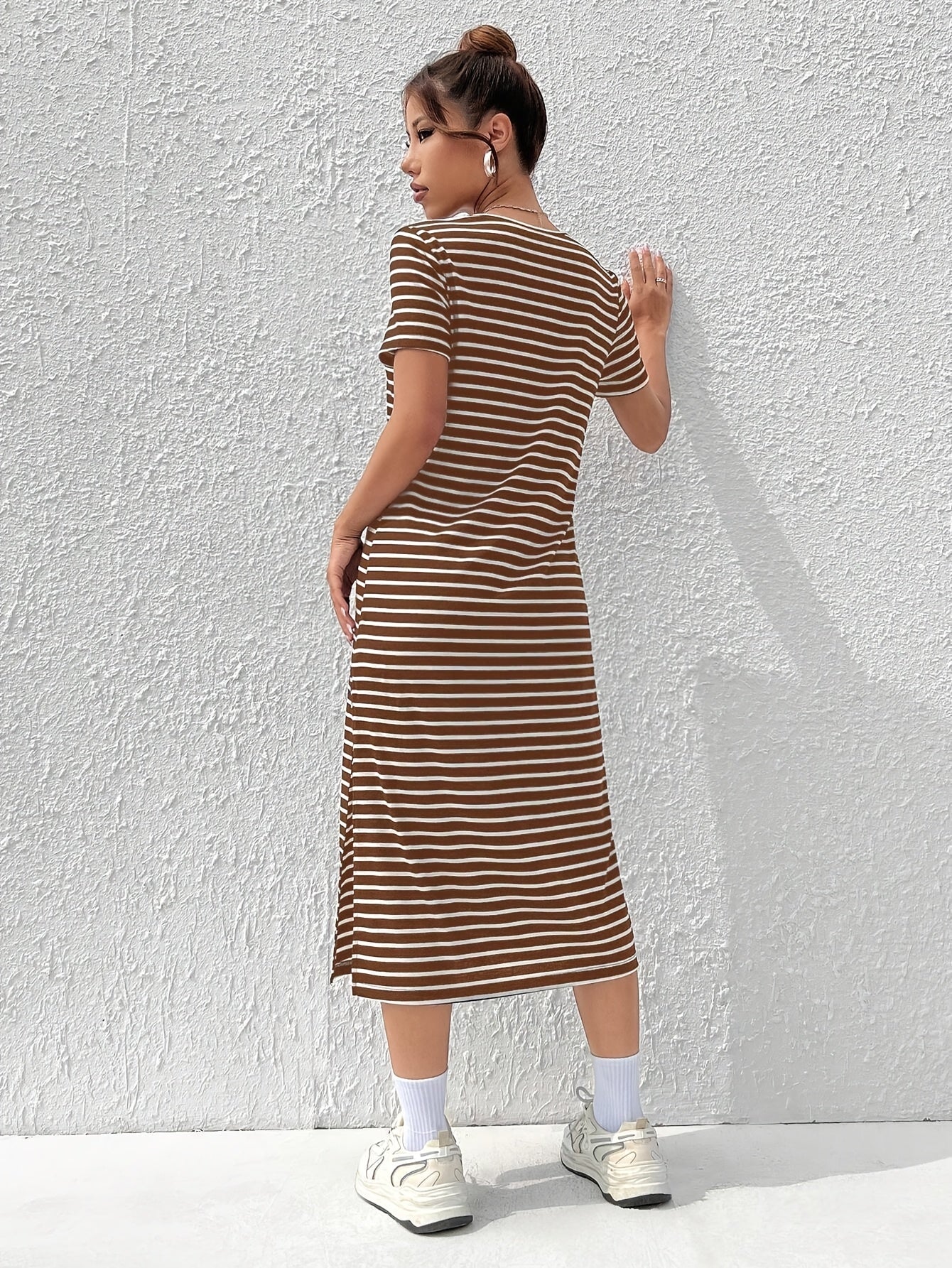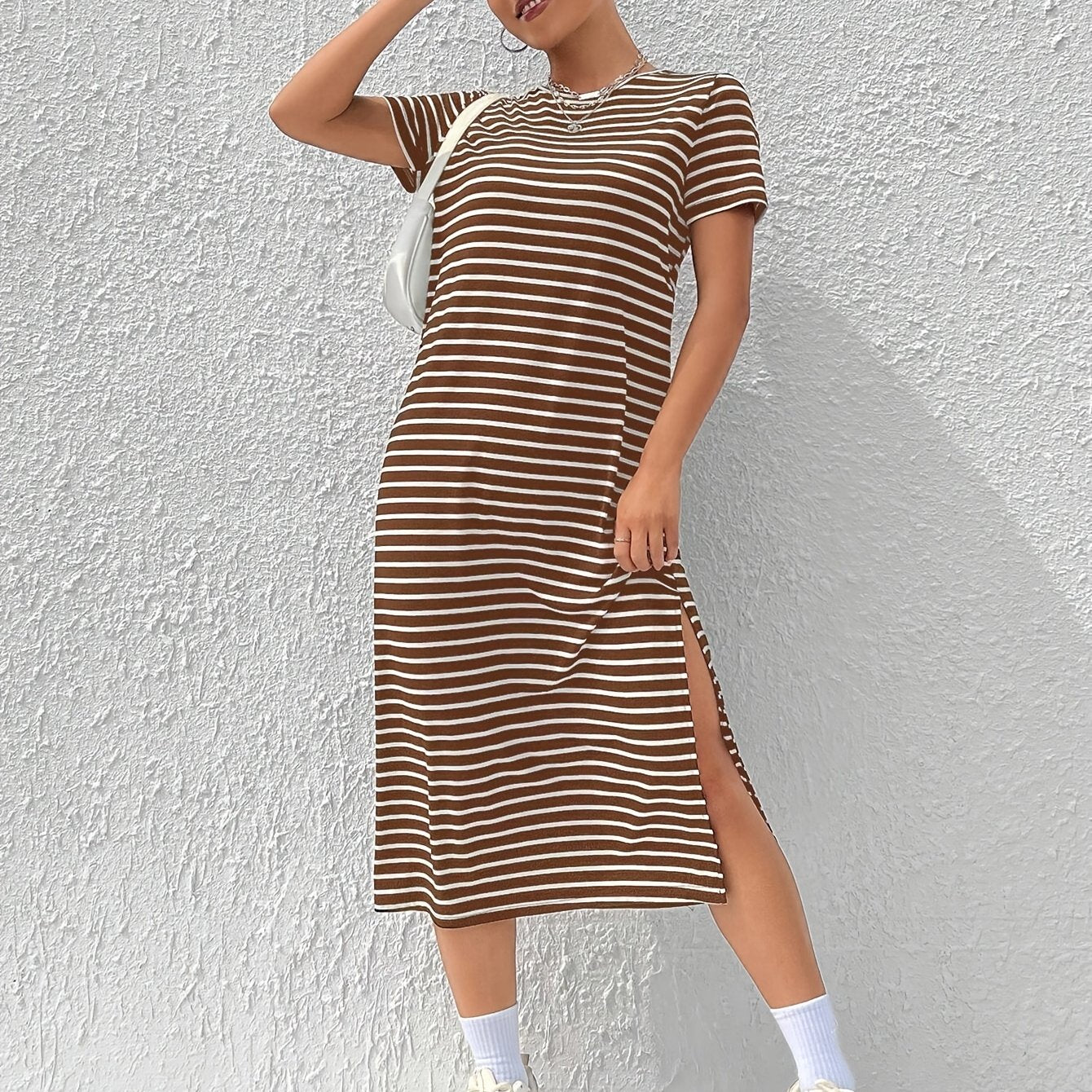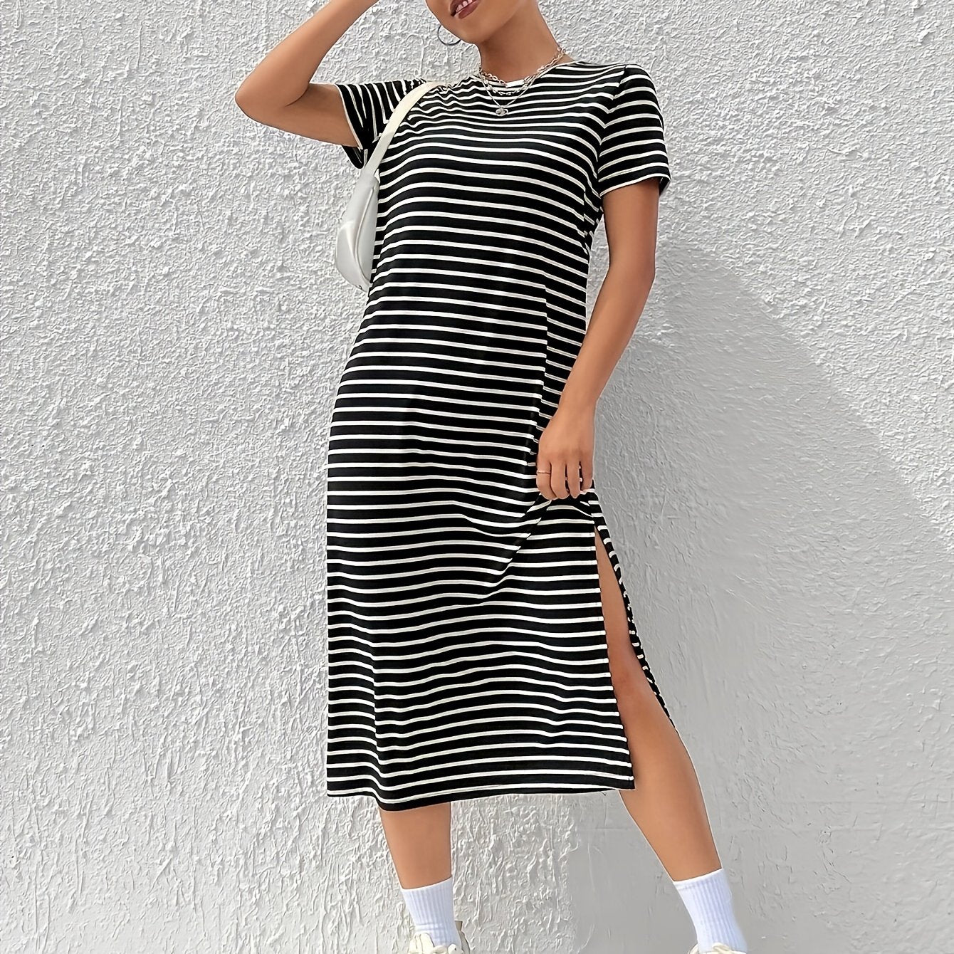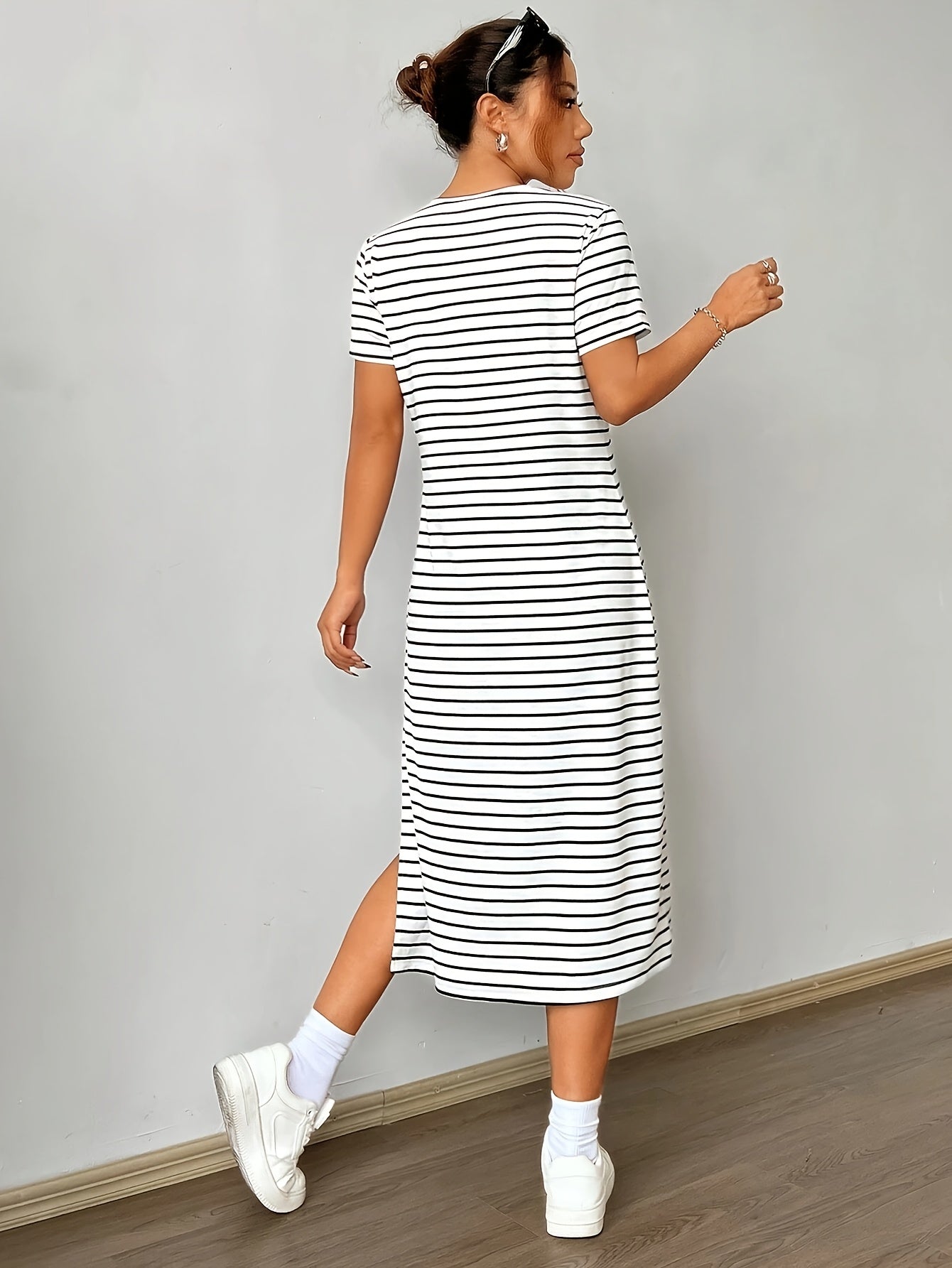 Linnea | Gestreiftes T-Shirt-Kleid mit Schlitz