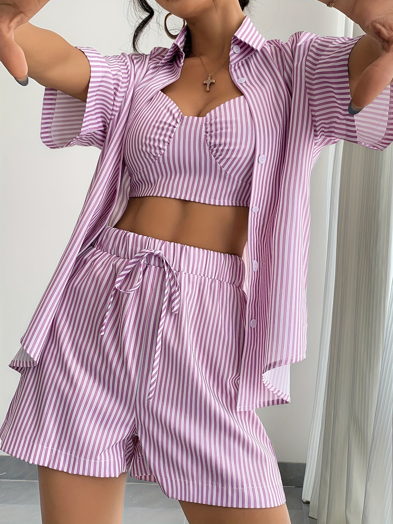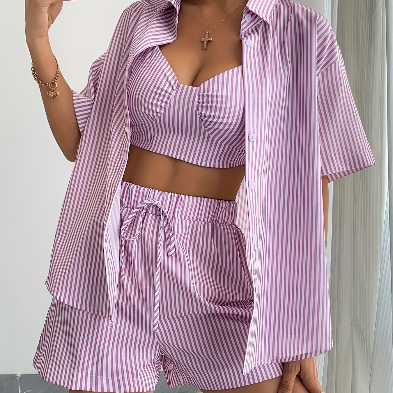 Viola | Gestreiftes Sommer-Set mit Top, Shorts und Bluse